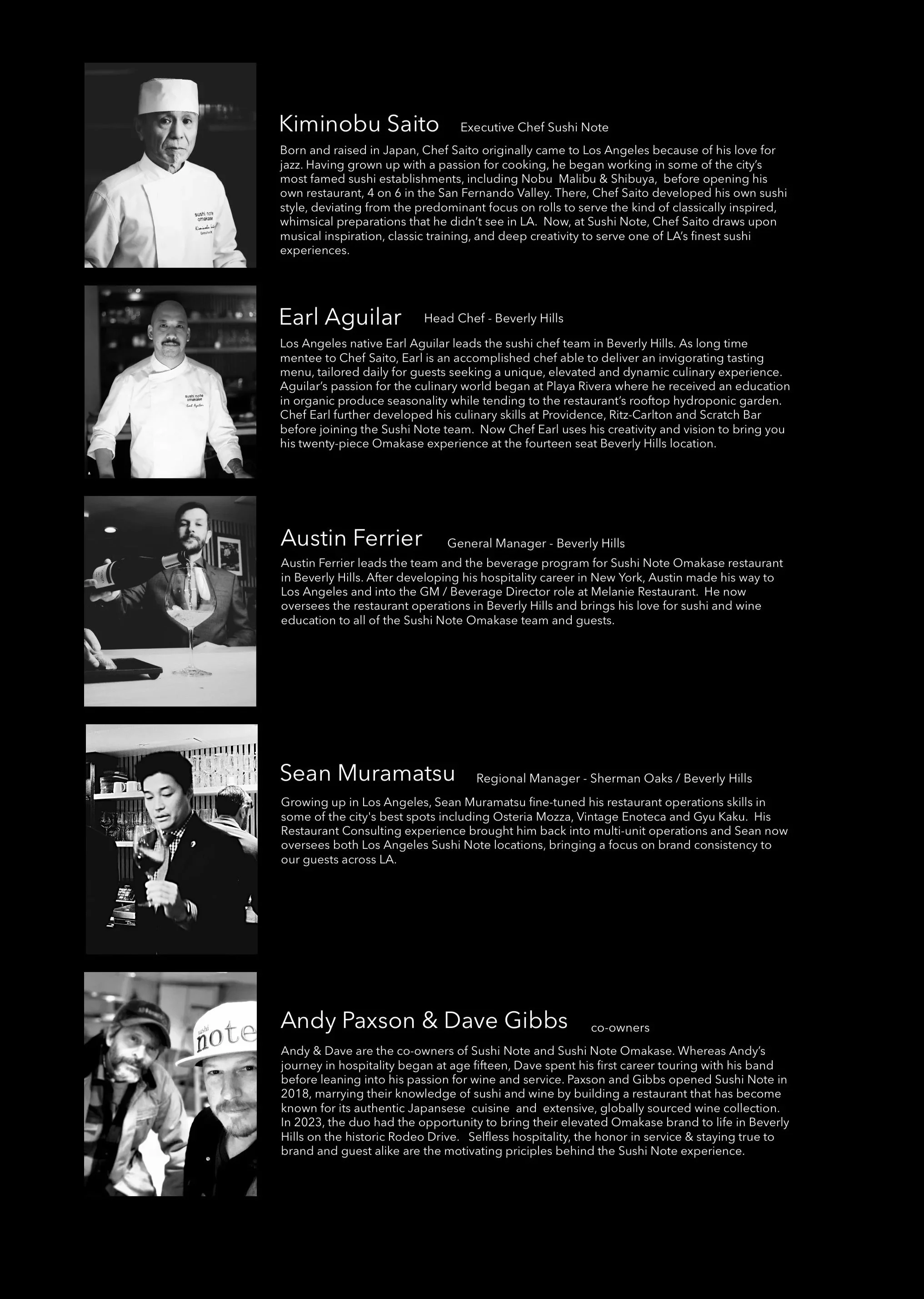Nestled within the famed Rodeo Collection on Rodeo Drive, Sushi Note Omakase was created by the hospitality veteran duo behind the original Sushi Note in Sherman Oaks, Andy Paxson and Dave Gibbs. The 14-seat restaurant offers a thoughtfully curated sushi program that takes guests on a twenty-course journey imagined by the celebrated chef team of Earl Aguilar and Kiminobu Saito.